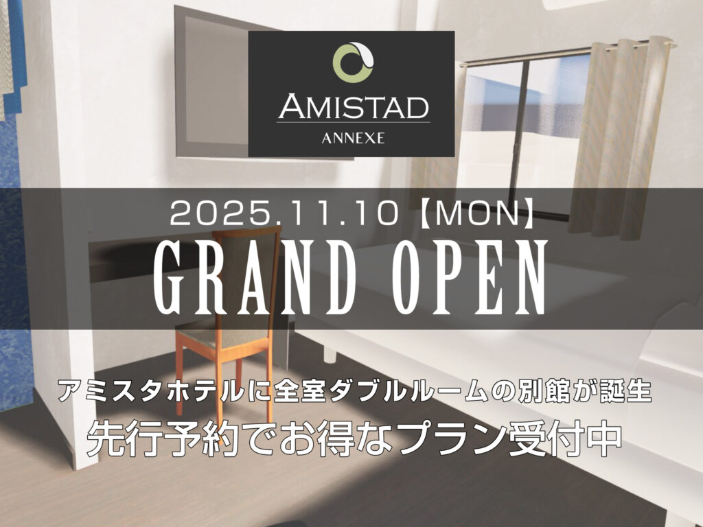 このたびアミスタホテルすぐ隣に「アミスタホテル アネックス」を令和7年11月10日(月)に開業いたします。